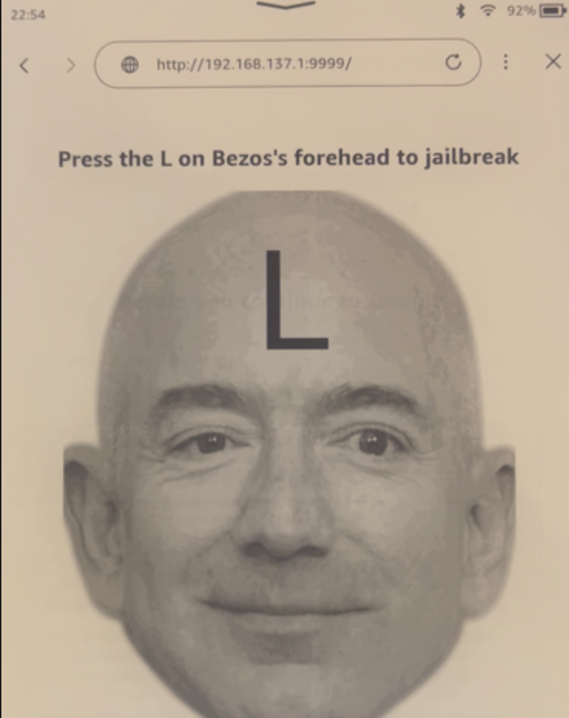 Press the L on Jeff Bezos' forehead, and Bang!